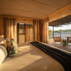 Secluded in typical mopane woodland are the eight tents accommodating just 18 guests. Each of the tents has a private viewing deck with panoramic views, air conditioning , mosquito nets and tea and coffee making facilities. The en suite bathrooms feature both indoor and outdoor showers . Around the camp you will find an infinity swimming pool, library and a water-level photographic hide. The spacious lounge overlooks the watering hole and there is also complimentary Wi-Fi in this part of camp.