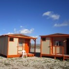 Each wooden cabin is raised from the ground, has a small double bed or twin beds, small wardrobe and a veranda overlooking the lagoon. They have their own WC and hand basin. Solar panels are used to power lighting and provide electricity. Each cabin has a charging point for small electronic devices such as video cameras, notebook computers and digital cameras. All cabins have an interior light, windows for ventilation and extra blankets.
