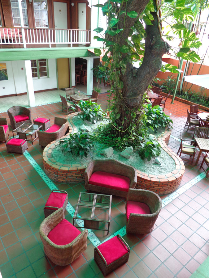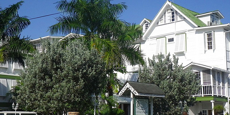 Executive rooms offer a choice of king or queen beds, decorated in the warm colours of the Caribbean, again furnished with the finest kufa vine furniture and with complimentary internet access. These open onto a verandah of polished hardwood that overlooks the Mango Tree Patio, where an 80-year-old, 17-metre-tall tree provides shade from the tropical sun and an abundant supply of fruit for the hotel! There are also two suites: the Quamina and the Sir Walter Raleigh. The hotel’s Bottle Restaurant is highly regarded for its atmosphere and cuisine, and is one of the best in Georgetown; it uses fresh produce to create an international menu with a local flavour, and a patio bar serves snacks.