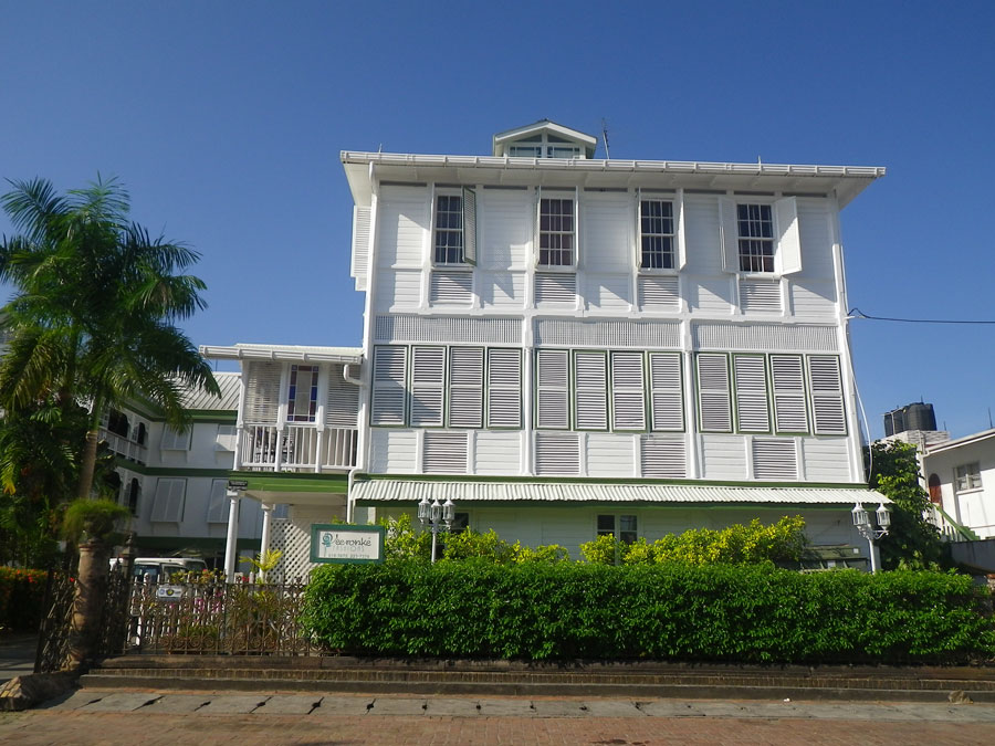 The 34 rooms reflect the traditional building-style of Guyana during the colonial era, with Demerara shutters and polished wooden floors, but feature an en suite bathroom and modern amenities that include individual climate control, IDD phones, cable television, minibar, tea and coffee-making facilities. hair dryer, iron and ironing board. Standard rooms come in two types: Gallery rooms vary in size and atmosphere, but all reflect the hotel’s Victorian elegance and charm; Verandah rooms are furnished with the finest locally-crafted wicker and kufa vine furniture, and open onto an ornate wooden verandah overlooking gardens.