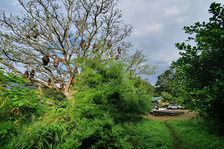 There are many fruiting trees that regularly attract a selection of colourful birdlife, while the flowering bushes are a hive of butterfly activity. At night, the pool attracts several species of frogs.