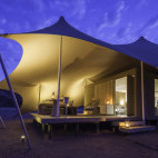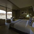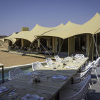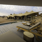 Consisting of only seven tents with twin beds and one family unit, with stylish bedrooms, en suite bathrooms and shaded outdoor decks, it is flanked by rugged hills and looks out over stark but stunning scenery. Despite its isolation, Hoanib Skeleton Coast Camp offers all the comforts and amenities necessary for an unforgettable stay.