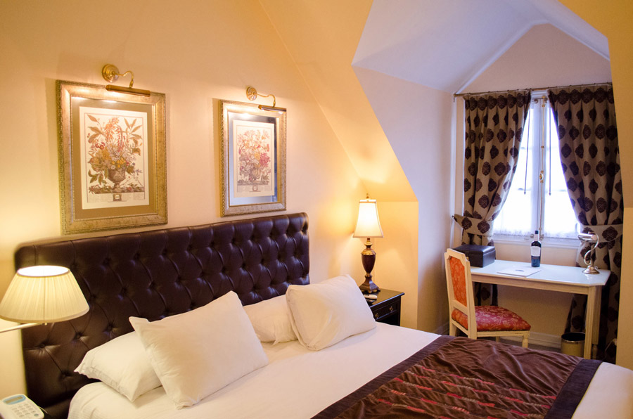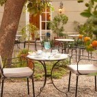 The 31 deluxe rooms have either king-size or twin beds – some with balcony or private terrace – as do three suites. All are tastefully decorated with modern amenities such as air conditioning, flatscreen TV, minibar, complimentary WiFi, safety deposit box and soundproofed windows. There is no restaurant, but the hotel serves breakfast (outdoors in summer) in the pleasant garden courtyard. There is an honesty bar and a kitchen where complimentary evening snacks and soft drinks are available.