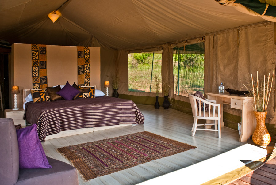 All of the six spacious tents are fully insect-proof and are equipped with large beds and quality linen, as well as a sofa. En suite bathrooms have hot and cold running water, and a flushing toilet. Some family suites are available.