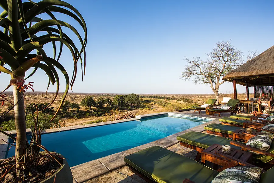 Positioned on a cliff with uninterrupted views of the Klaserie River and surrounding plains, this beautiful luxury safari camp takes up a prime position in the Klaserie Private Nature Reserve.