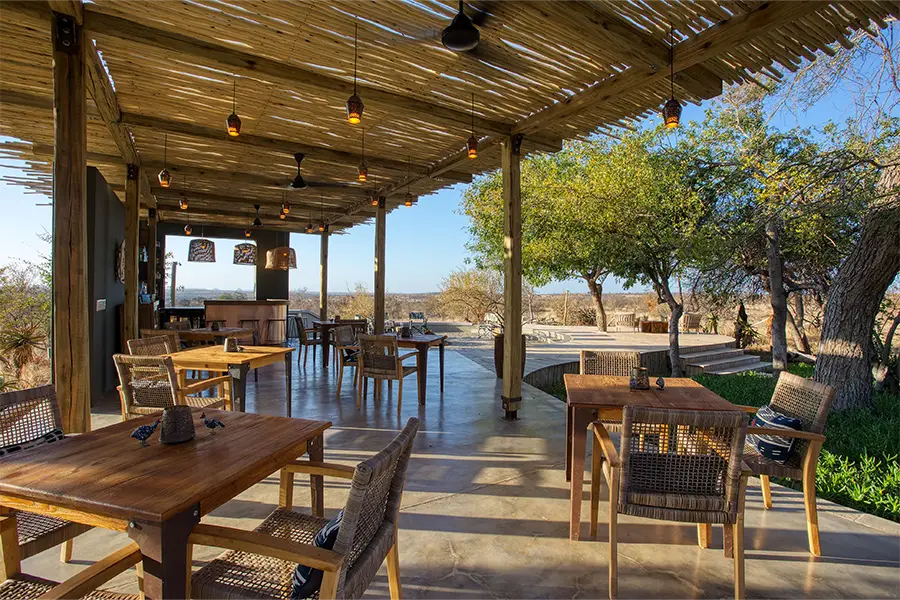 The standout feature of the camp is undeniably its elevated location and the contemporary wooden deck with infinity pool, sun loungers and dining area, providing the perfect spot to admire the encompassing bushveld setting with a cocktail from the open-air bar. Scan the riverbanks for elephants and buffalo coming to quench their thirst.