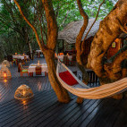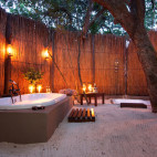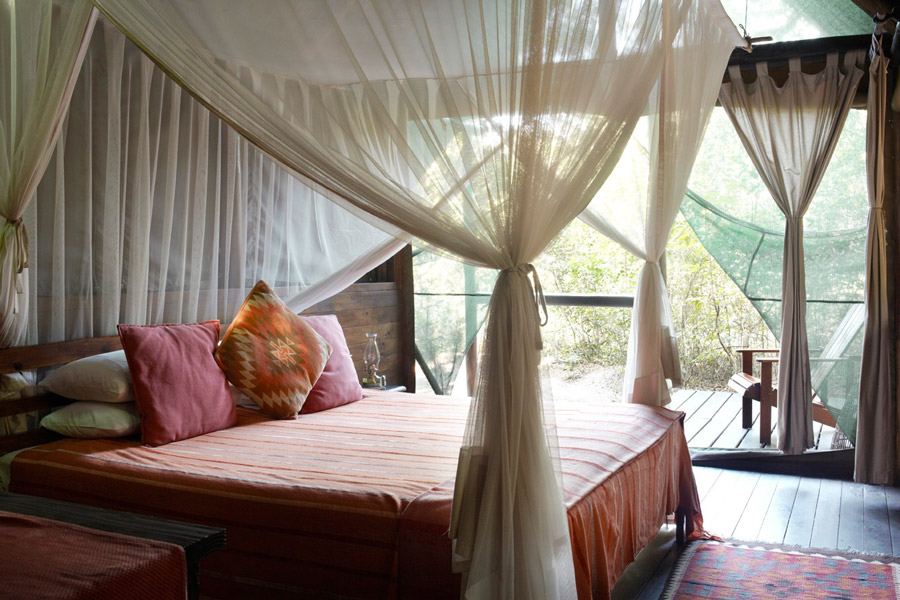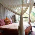 The thatched bush suites (some with open-air bathrooms) are carefully positioned for privacy and intimacy. Rooms are raised on a wooden deck with a beautifully appointed bedroom, balcony, dressing room and separate bath and shower.