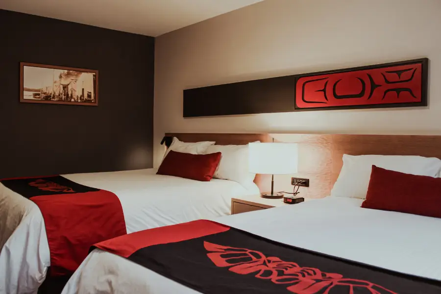 Kwa’Lilas is a Kwak̓wala word meaning a place to sleep. The Gwa’sala-‘Nakwaxda’xw elders chose this word in the hope that guests would find a peaceful rest after a day of exploration on Northern Vancouver Island. The property is the only indigenous run 4-star hotel on the north of the island and takes inspiration from the local area, and its rich cultural history.