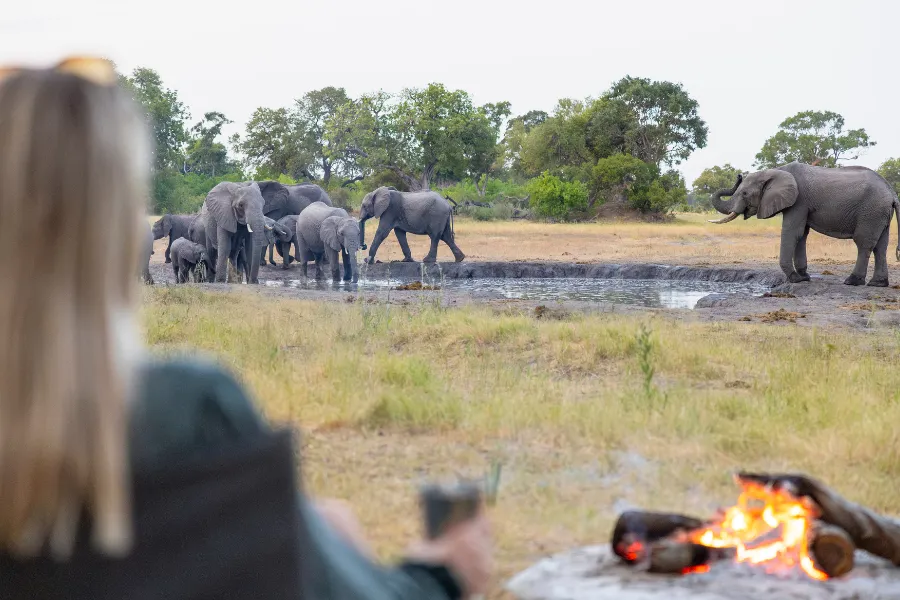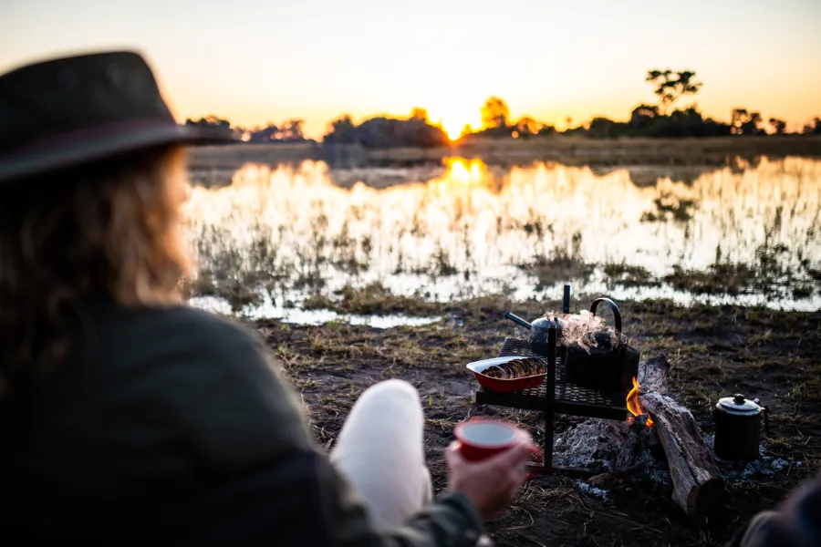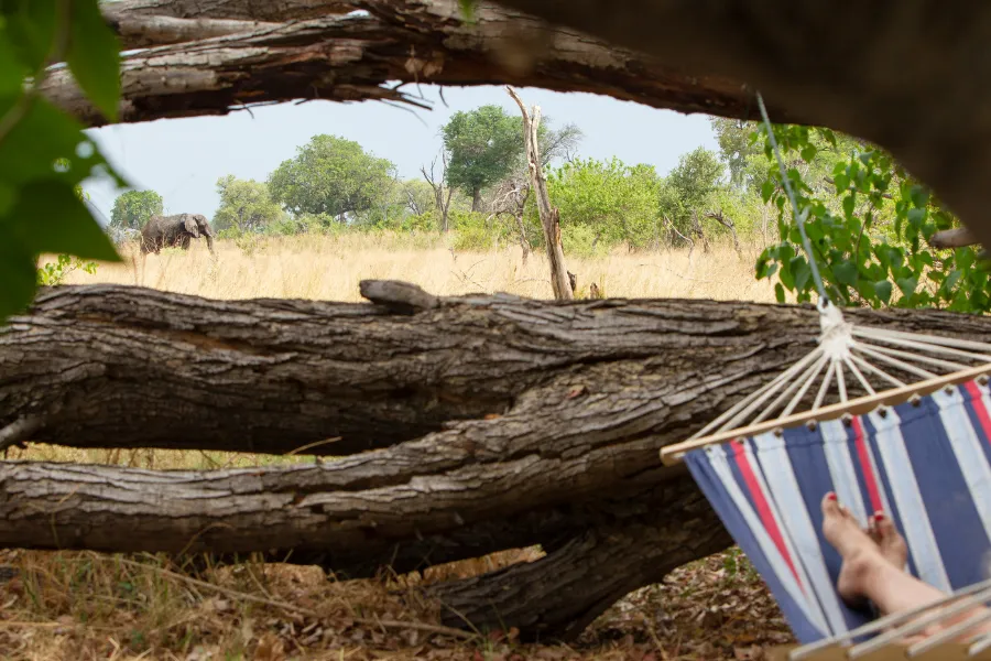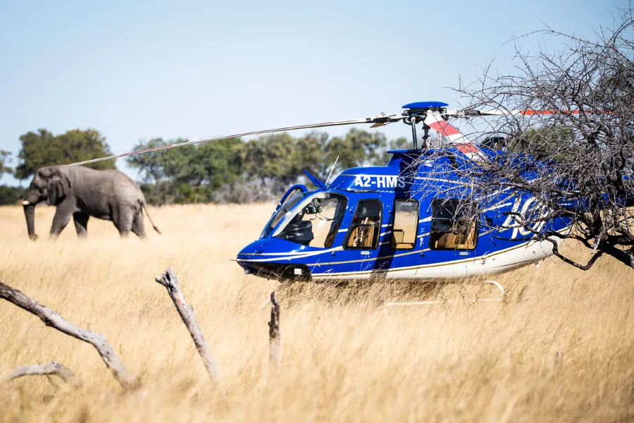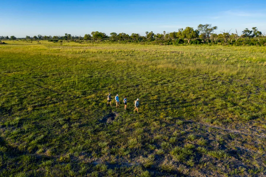 Only accessible by helicopter, the trail visits two almost identical sister camps, Kweene River Camp and Magwegwe, usually with a walking transfer between the camps during the middle of your itinerary, if conditions permit. When water levels are high, the transfer will often include travelling by mokoro or vehicle as well as on foot. Moving days are a full day of exploration, with a delicious packed lunch followed by a rest during the heat of the day, all while your back-up team moves and sets up camp awaiting your arrival in the late afternoon.