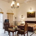 Laxmi Vilas Palace Hotel was originaly built for the younger brother of the Maharajah Ram Singh. Today most of the palace has been converted into 30 air-conditioned rooms and suites, each with en suite facilities, divided between two wings offering standard and deluxe rooms. The spacious and airy public areas include a bar, restaurant and reading room, which all open onto a pretty central courtyard, and there is a large swimming pool in the grounds.