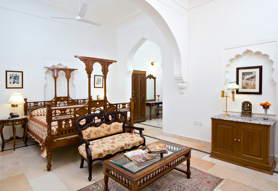 In cooler months a rooftop terrace is used for dinner. The palace retains all the quirky charm of an ancient Rajput palace and makes an excellent alternative to staying in Agra. It is also the perfect place from which to explore the famed bird sanctuary of Keoladeo Ghana National Park nearby.