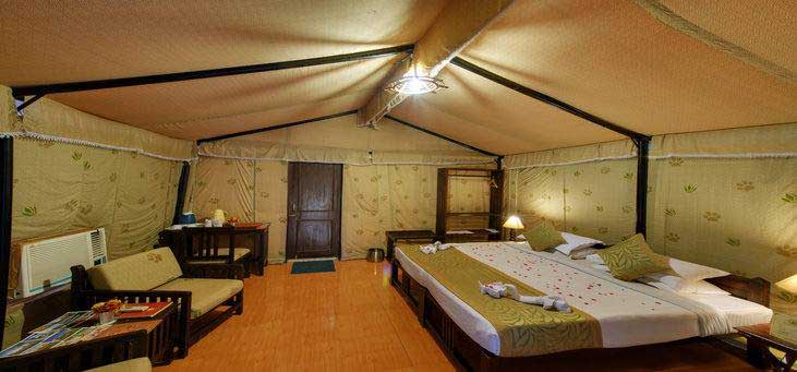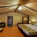 Other facilities include a dining tent that overlooks the river and offers a buffet of largely Indian vegetarian food, although there is always at least one Chinese, Western or non-vegetarian dish, with the occasional evening barbecue. There is also a recreation room with a pool table, carom board and a satellite television. The camp has its own small four-wheel-drive vehicles for safaris into the national park, and guides are allocated by the authorities on a strict rotation basis.