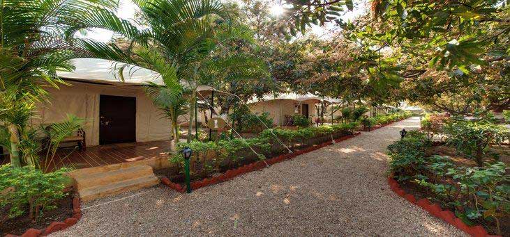 This tented camp is located in a shady orchard of mango trees beside the Hiran River just outside the town of Sasan Gir, convenient for visiting Sasan Gir National Park to see its Asiatic lions.