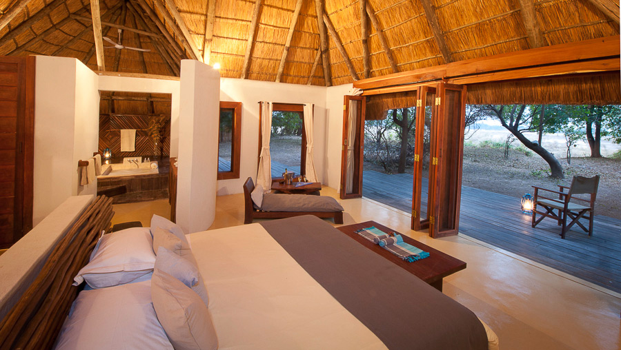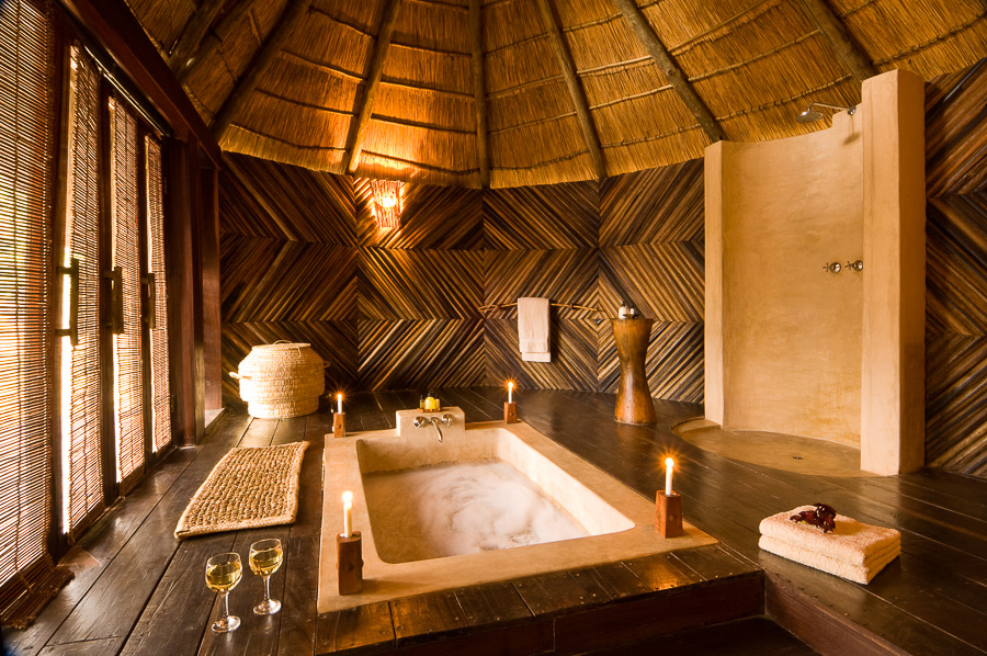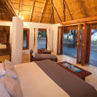 Each bush suite is built from brick, with a thatched roof and en suite bathroom with a sunken bathtub which looks out onto your own private corner of Africa. The bathroom and bedroom have sliding doors leading on to a deck area, with views out over the river.
