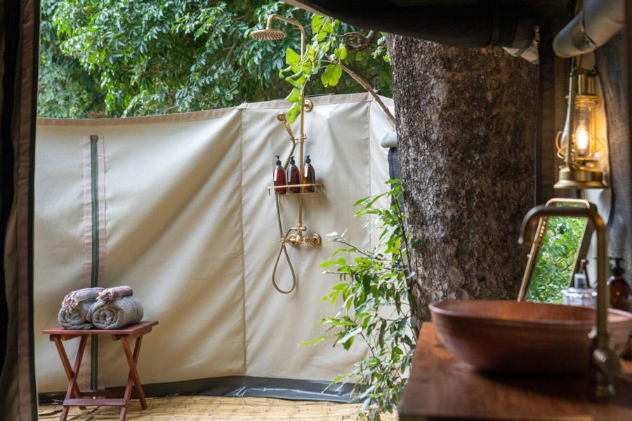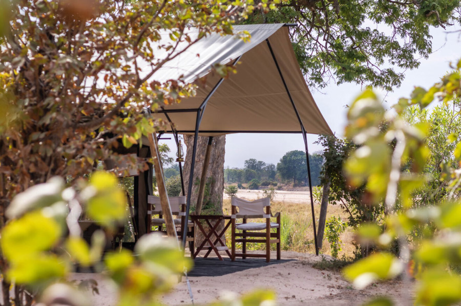 Four chalets, constructed from grass, bamboo and thatch, sit in a beautiful shady grove overlooking a floodplain often frequented by elephant and hippo. This secluded camp features an al-fresco dining area and each of the rooms possesses cooling fans and en suite facilities consisting of hot showers and flush toilets. There is no WiFi or phone reception, allowing guests to fully immerse themselves in the surrounding bush, and the camp runs on solar-powered lighting.