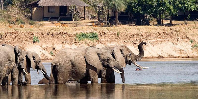Located in the heart of the South Luangwa National Park, Nsefu Camp consists of six en suite brick and thatch rondavels, each offering a view of the river from large windows and a wooden verandah.