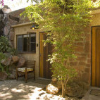 The accommodation stretches out on either side: six budget Garden rooms are located in the garden of the original homestead, overlooking a lapa with tea and coffee making facilities. Each has a double and a single bed, an en suite bathroom, roof fan and safe. These rooms are situated quite close together and do not have views over the plain, however the choice of activities is identical, and all meals are taken at Plains Camp.