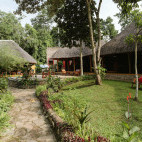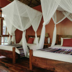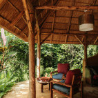 Nine luxury safari tents on raised wooden platforms are covered by thatch to blend perfectly with the environment. Each has a private verandah with a forest view, comfortable beds, large windows, and en suite bathroom; interiors are tastefully decorated in African style, using local stone, bamboo and wall paintings. In addition seven intimate forest cottages with verandah and fully equipped en suite bathroom are decorated with African art.