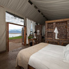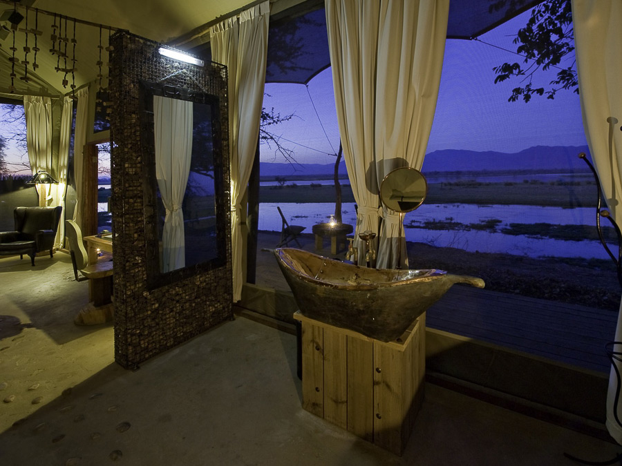 Ten spacious en suite tents include a honeymoon suite and a family room, all of which overlook the river. Each tent has both indoor and outdoor showers heated by solar geysers, and the camp boasts an outdoor ‘bath-with-a-view’ in a secluded, scenic spot. A central dining, bar, library and main area complete the facilities. There is one deck with an infinity pool and a separate, inviting, cushion-strewn deck for sundowners and stargazing.