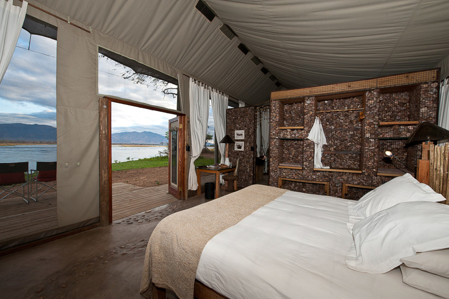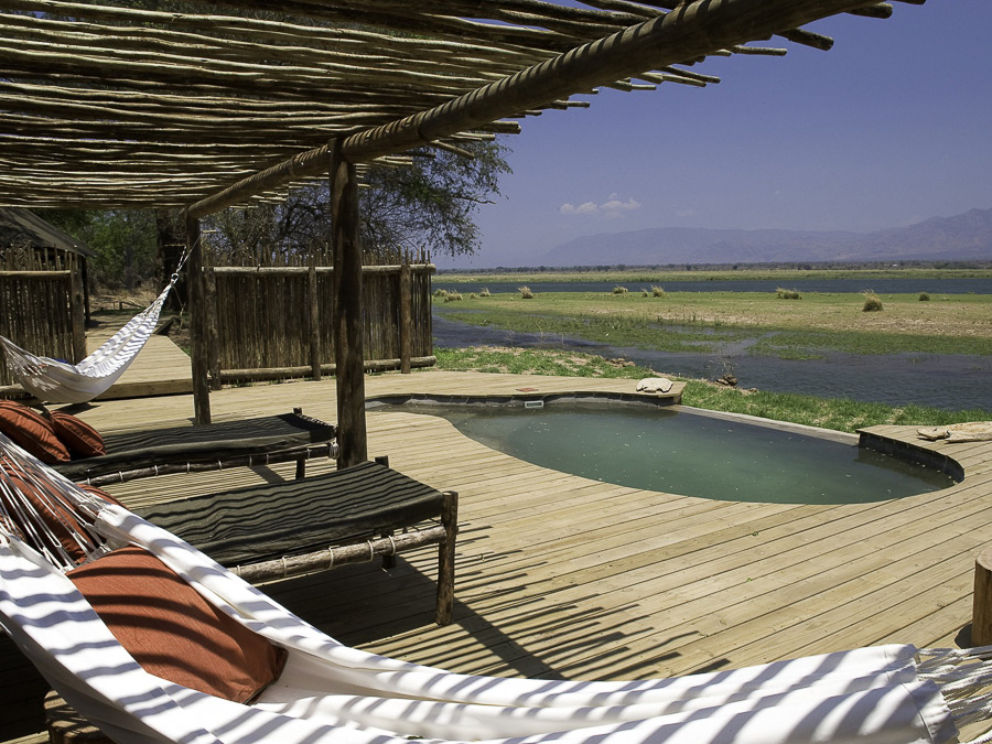 Ruckomechi Camp is situated on the western boundary of Mana Pools National Park, and has wonderful views across the Zambezi to the mountainous escarpment of the Great Rift Valley.