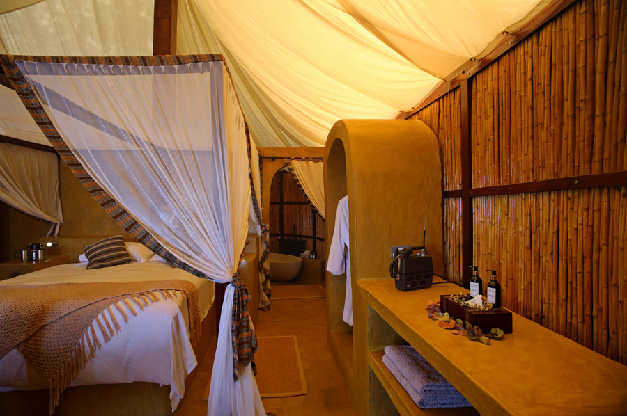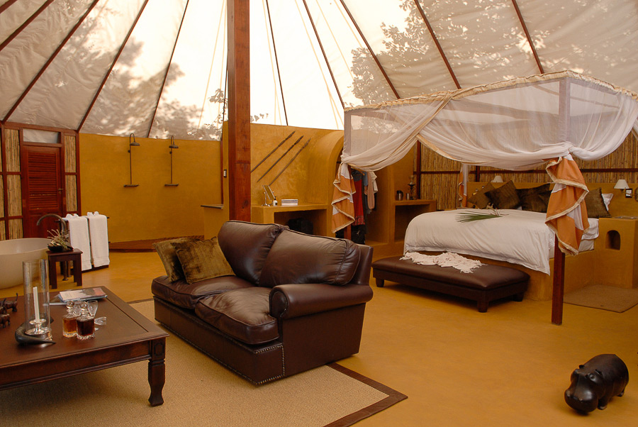 The camp epitomises ‘bush chic” with eight luxurious, white Bedouin-style tents discreetly positioned beside the Zambezi River. A minimalist style incorporates teak furniture, sumptuous four-poster beds and flowing white fabrics and nets. The tents are cool, private sanctuaries shaded by mahogany, acacia and sausage trees, and are famous for their private, open-air, en suite bathrooms offering steaming hot water and wonderfully decadent secluded views. There are five luxury tents, two honeymoon suites and a fabulous option for families or groups - the Kigelia House - which has two en suite bedrooms and an open plan living area leading onto a private deck and pool.