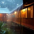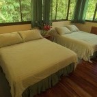 Well-appointed rooms are grouped in various blocks spread out over the rainforest site. Each room has a private bathroom with solar-heated water and double sink, desk, clothing rack, ceiling fan and insect-screened windows. Each block of rooms is surrounded by a wide verandah where you can relax in a chair or hammock while watching birdlife in the surrounding forest. Superior air-conditioned bungalows are discreetly tucked away in the forest above the botanical garden on the other side of the road from the main part of the lodge and the public areas, but only a short walk away. Back on the main site, a two-roomed house is available for families or small groups. Although the main entrance to the lodge is on a road, the rooms are far enough away to be quiet.