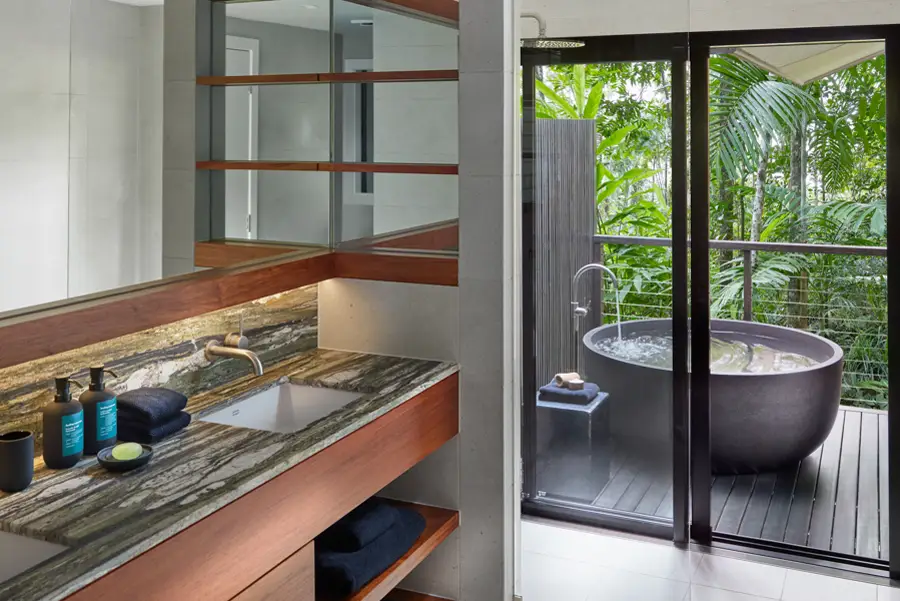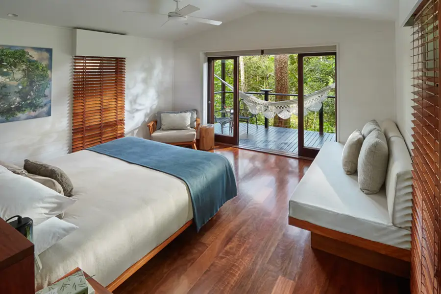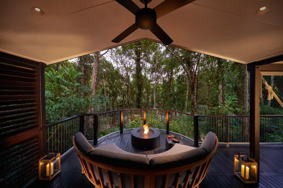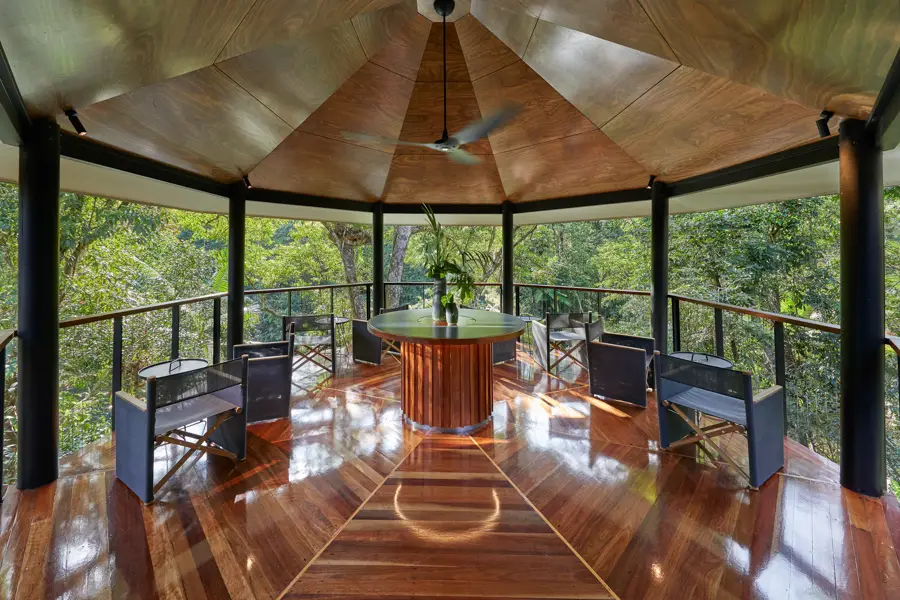 Studio treehouses have a cosy feel and en suite marble bathroom with walk in rain shower, while slightly larger garden treehouses near the main lodge feature interiors of tropical rosewood and silky oak, a bathroom with separate shower and large spa bath, and a double hammock on the balcony. Larger still, deluxe treehouses are set high up in a beautiful private setting with en suite marble bathrooms with walk-in rain shower and large corner double spa bath. There are also suites for the ultimate in opulence. Amenities include tea/coffee making facilities, iron/ironing board, CD player, iPod docking station and turn-down service for your ultimate comfort.