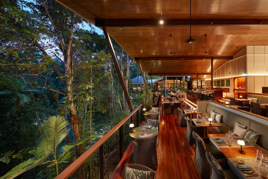The treehouses of luxurious Silky Oaks Lodge beside the Mossman River look out over a pristine billabong, with views of the rainforest canopy and make an ideal base for exploring Daintree National Park.