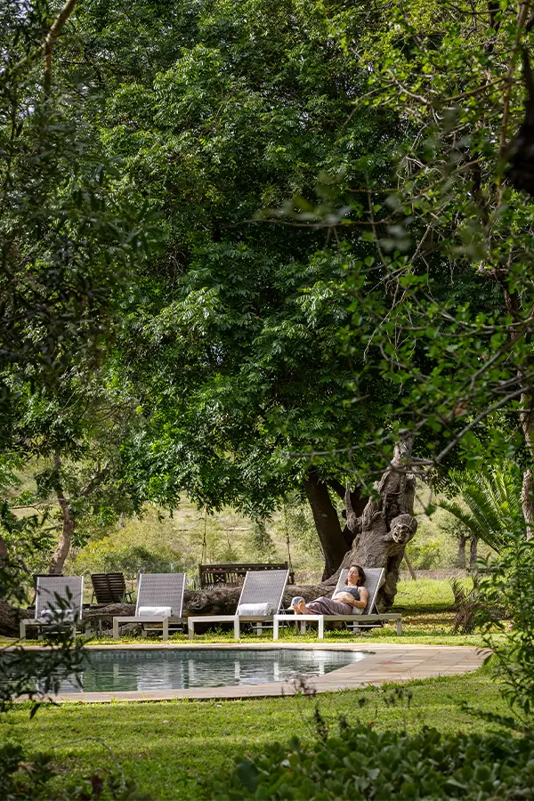 Part of the Simbavati Collection, the luxurious Camp George opened its doors in 1988 and takes its name from its founder, George Huysamer, who originally utilised the property as a family retreat. The property holds historic significance as a location where a number of ‘bush meetings’ took place with senior government officials that led to the release of Nelson Mandela in 1990. Over time, the camp has evolved into the magnificent eight suite camp that it is today, with remarkable landscaped gardens adorned with magnificent fever trees and rare South African cycads.
