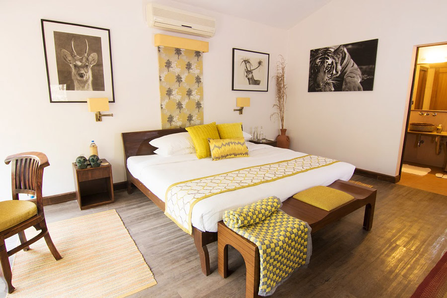 With comfort in mind, each of the 12 luxurious slate and stone cottages feature a queen-size bed, a rain shower, bath, fireplace and minibar, air-conditioning, tea and coffee making facilities and lounge chairs. Each spacious cottage is set in a secluded area surrounded by trees, providing guests with privacy and exclusive views across the grasslands which are often frequented by chital, wild boar, langurs, barking deer and the occasional jungle cat.