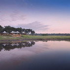 Tucked away subtly in a thicket of acacia trees, on an island that stands at the heart of an ancient river system, the location virtually guarantees encounters with African wildlife from the moment you step out of your tent. A waterhole just 100 metres from the large central mess tent, attracts elephants – family groups and individual males – throughout the day and night. Some of these even choose to drink from the camp’s tiny plunge pool, where you can sit – no more than a couple of metres away from these wild animals – on the deck beside the firepit.
