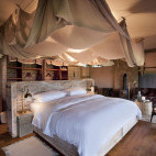 Somalisa Camp is designed to have a low environmental impact, and provide a barefoot luxury experience with understated elegance. Although solar power conveniently provides lighting, water for bucket showers in the en suite outdoor bathrooms is heated on a boiler and brought on demand. The décor and furnishings are unabashedly old-fashioned, redolent of a bygone era, with lots of dark wood.