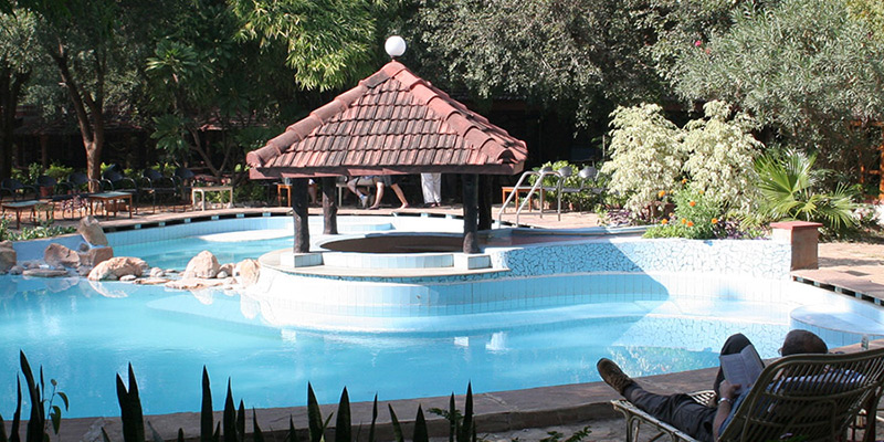 The resort has a restaurant serving Indian, continental and Chinese cuisine in a central pavilion - this also doubles up as a bar in the evenings. In the warmer months there is a swimming pool for cooling off in during the heat of the day.