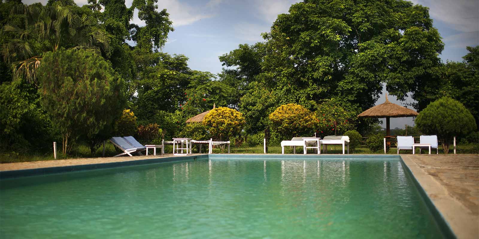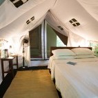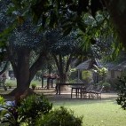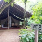 Its famed treehouses and bungalows, built from sustainable materials, contain 20 rooms with en-suite bathroom, solar-powered lighting, ceiling fan and hot water. A large, open-roofed dining area and bar is built around an open fire, and expert naturalist guides lead elephant, jeep and boat safaris.