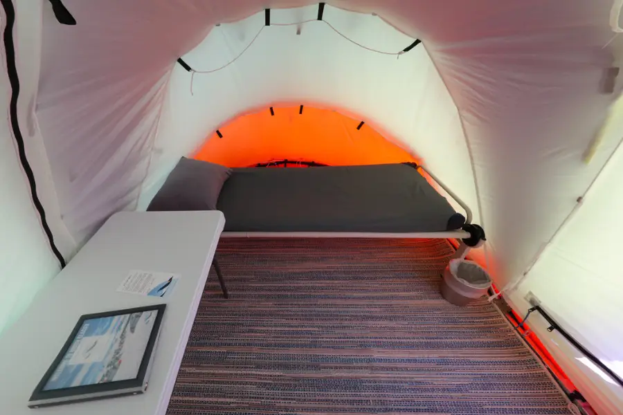 Located on Union Glacier, this exclusive camp accommodates up to 70 guests in twin-occupancy clam tents. Built to endure the extreme polar conditions, these double-walled tents feature high-tech nylon covers and sturdy aluminium frames. Inside, guests will find camp beds, mattresses, pillows, linens and towels.