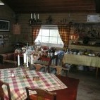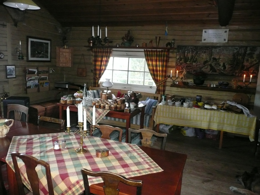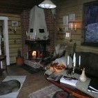 The lodge is centred on a large and welcoming central lounge and dining area with a cosy log fire, and a verandah that offers views across the lake. The small and basic, but comfortable rooms are in adjacent cabins, heated by wood-burning stoves, but without running water. A separate shower and sauna cabin overlooks the lake, and there is a stand-alone toilet building. All meals are home-cooked by Eva, and the vast majority of the produce used is locally supplied.