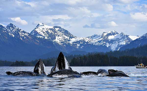 Under the expert guidance of Sean Weekly, photograph humpback whales bubble-net feeding in the scenic waters of Sitka Sound, in Alaska. Witness multiple pods of humpback whales co-operating to force shoals of herring to the surface, where whales and fish erupt in a frenzy of activity.