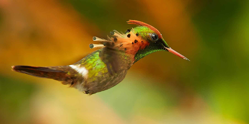 Ideal for viewing: collared trogon, blue-backed manakin, white-tailed sabrewing, blue-crowned motmot, blackback land crab