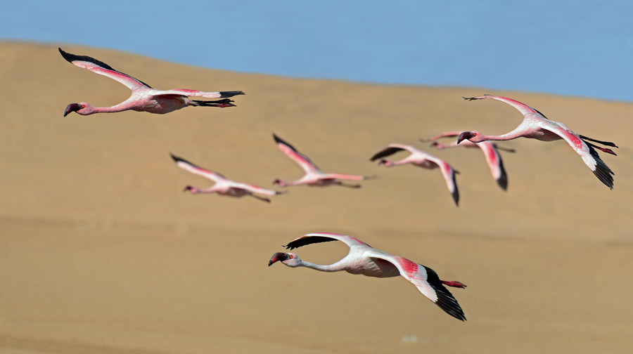 En route, we will visit the lagoons and coastal areas of Walvis Bay, which are a world-renowned sanctuary for some 160,000 birds, as well as a bi-annual feeding station for 200,000 migratory shore birds and terns. Some 70% of the world's chestnut-banded plovers rely on these lagoons for survival, and 80% of southern Africa's flamingos feed here.
