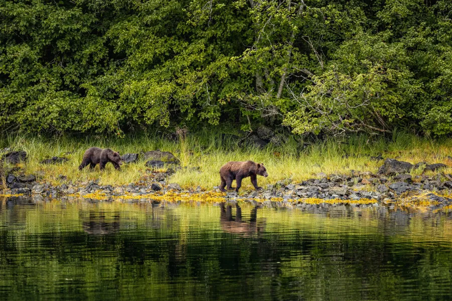 Navigate through the glacier-carved fjords of the Chichagof coast and later launch the kayaks and skiffs for a closer exploration of both land and sea. This region boasts one of the world's largest populations of bear. Venture ashore in search of towering trees and fascinating tidal pools, easily found amidst the lush landscapes of the