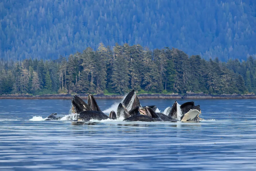 Today, in these pristine waters, you might find yourself amidst a congregation of humpback whales feeding. Sail past Five Fingers Lighthouse, a historic beacon standing as Alaska's oldest light station, and observe sea lions basking on the rocky outcrops. Whether you opt to paddle into the depths of Port Houghton or Windham Bay or embark on a hike, expect to be greeted by charming black oystercatchers.