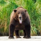 From lush, wide open bays, such as Hallo Bay, to secret inlets known only to us, each destination we visit in Katmai provides a different aspect and perspective on the bears, their behaviour and their environment. We expect to see bears of all shapes and sizes from mothers with cubs, to frolicking yearlings, mischievous adolescents and huge dominant males. This really is an immersive wildlife experience which provides all manner of photographic opportunities.