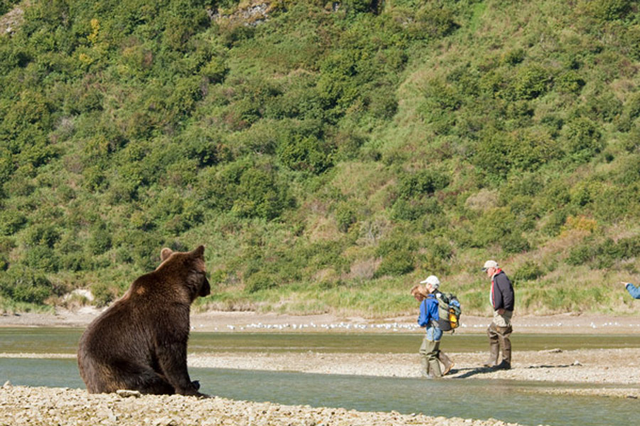 In the afternoon, it is time for our first shore excursion of the trip and this marks our first chance to photography the brown bears of Katmai. We leave the vessel on the skiff and we head to shore where we then set off on foot in company of a highly experienced bear guide.