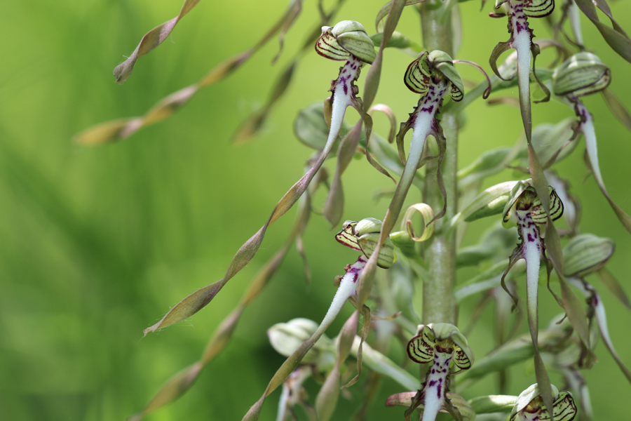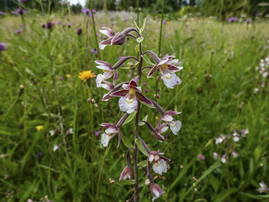 In wilder meadows the limestone flora includes needle-sunroses, ground pine, field gladiolus, lizard orchid and the beautiful meadow clary. Among the butterflies, various blues, skippers and fritillaries are found.