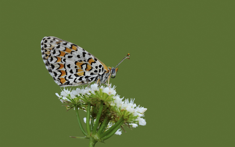 Butterflies here are very varied. Damp acid grassland supports false ringlet, small pearl-bordered fritillary and large chequered skipper. In hidden meadows along streams we may find lesser purple emperor, high brown fritillary and heath fritillary.
