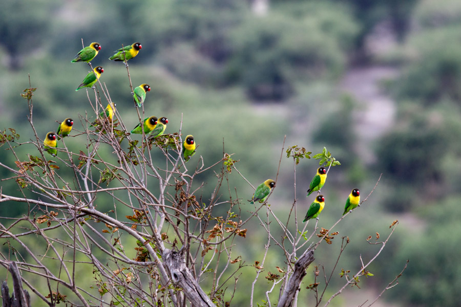 After breakfast, we head to our next accommodation, which is set in a grove of acacia trees on the northern boundary of Tarangire National Park. Our lodge is situated near a seasonal riverbed lined by many species of trees, which attracts a diversity of birdlife. The lodge surrounds are a particularly good place to see the endemic ashy starling, as well as yellow-collared lovebird and rufous-tailed weaver.