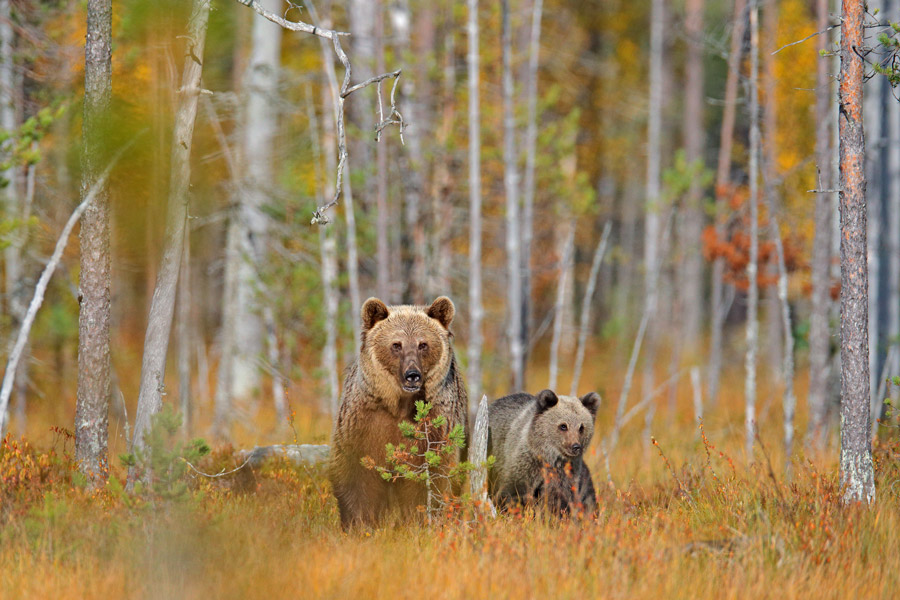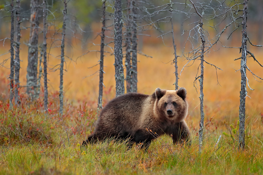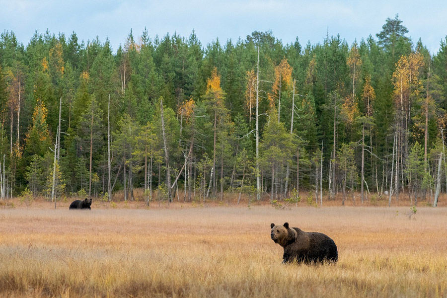 Timed to coincide with the beautiful autumnal colours of the vast Taiga forest in eastern Finland, this dedicated photography tour has been designed to maximise opportunities photographing Europe’s iconic predators – brown bear, wolverine and grey wolf. Using a number of purpose-built hides in the remote forests and meadows, spend the afternoons and evenings photographing all three of our target species. This tour provides a different feel to our Boreal Predators Photography tour, with the wildlife starting to grow their winter coats.