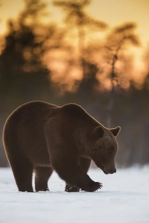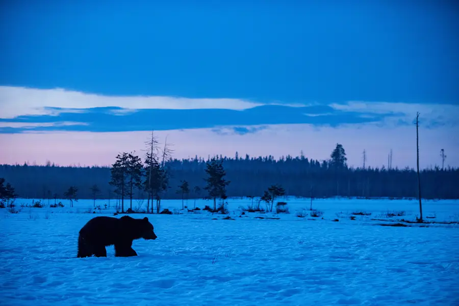 Early spring is a magical time for wildlife photography in northern Finland, with lengthening days illuminating forests still cloaked in winter snow. On this carefully timed tour, we spend our nights in specialist wildlife hides set in prime habitat, giving us exceptional opportunities to photograph the region’s most iconic predators. As brown bears emerge from hibernation, we hope to capture striking images of them against the pristine white landscape, while also watching for wolf and solitary wolverine moving silently through the frozen forest.