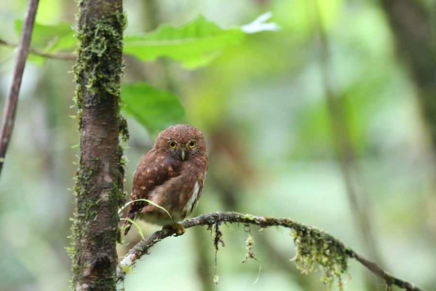 We lunch at the reserve’s small guesthouse, where hummingbird feeders provide opportunities to photograph long-tailed sylph, tourmaline sunangel, Andean emerald and sparkling violetear, all of which are regular visitors. This keeps us busy in the early afternoon, when the forest is quiet. We stay on until after nightfall to try for nocturnal species that include various nightjars and owls.
