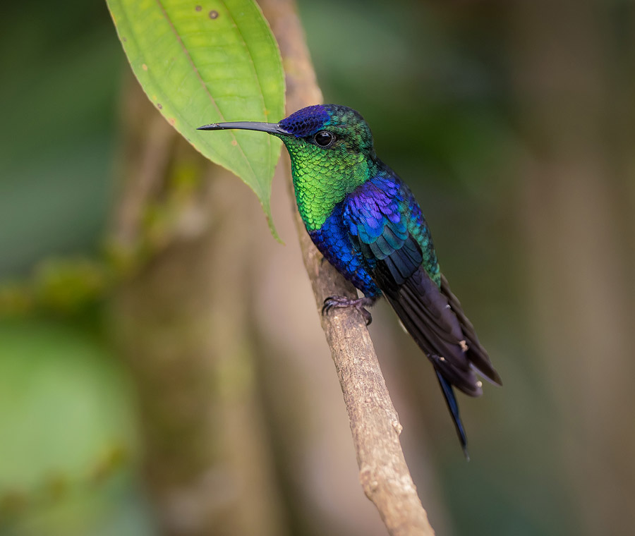 We make the most of the generally clear mornings. This region receives a great deal of rain and we can expect a downpour or two, especially as the day progresses. Showers often pass quickly and we can always retreat to the vehicles should it get particularly heavy. However, if the skies are clear we might be lucky to be graced with a flyby from raptors such as the beautifully marked ornate hawk-eagle or perhaps an impressive black-and-chestnut eagle. We can expect a dazzling list of tanagers that might include purplish-mantled, silver-throated, rufous-throated, glistening green and flame-faced to name but a few! Woodpeckers, too, are well represented, with regional specialities including yellow-vented, crimson-mantled and powerful. Each day there is also time to enjoy the delights of the hummingbird and fruit feeders around the lodge.